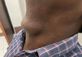 TDC is the most common congenital anomaly related to the thyroid gland. In a TDC, papillary carcinomas typically present as swellings along the midline of the neck, which move with deglutition and tongue projection. Less than 1% lof all TDC cases present with papillary carcinomas. This type of pathology has a good prognosis and can be successfully managed with cyst removal (Sistrunk procedure) and careful follow-up. Thyroidectomy, neck lymph node dissection, or adjuvant treatments are not required in most cases.