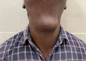 42/M Patient came with H/o self inflicted, cut throat Diagnosed -Self inflicted cut injury /zone-1 and 2 neck injury . Presented with severe bleeding, hypovolumic shock .Airway secured and fluids started . Pt was shifted to emergency OT and resuscitation started and stabilized by our anesthesia team. Patient underwent Emergency exploration of neck and bleeding IJV was ligated and ryles tube inserted .There were two penetrating wounds in neck , one in zone 1 which was exposed and Tracheostomy done. In zone 2, there was complete transection of thyroid cartilage and epiglottis, completely separated and tear went upto pyriform mucosa. Cartilage repair and mucosa repair done . It is first of its kind , cut throat injury with vessel bleed and pt revived in almost arrested stage and successfully surgical repair done .