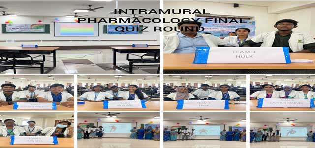 | 2. | Pharm hunt intra mural quiz for 2nd year MBBS | 12.09.24 | Pharm hunt-24 -Intramural quiz in pharmacology was conducted on 12.09.2024 for the selected 2nd year MBBS Students.A writen prilimnary round was conducted on 30.08.24 for all the students. |